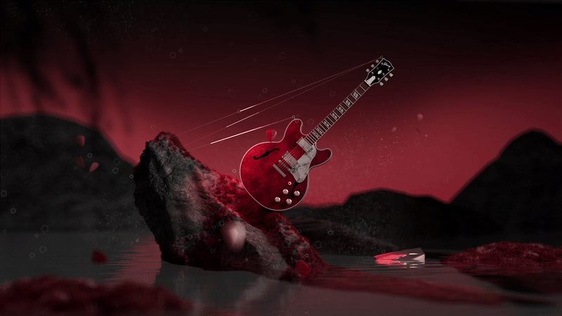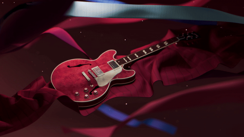R&D for Gibson advert, highlighting the quality of Gibsons guitar by careful cloth floating gracefully. Softwares used to design these were Cinema 4D, After Effects.