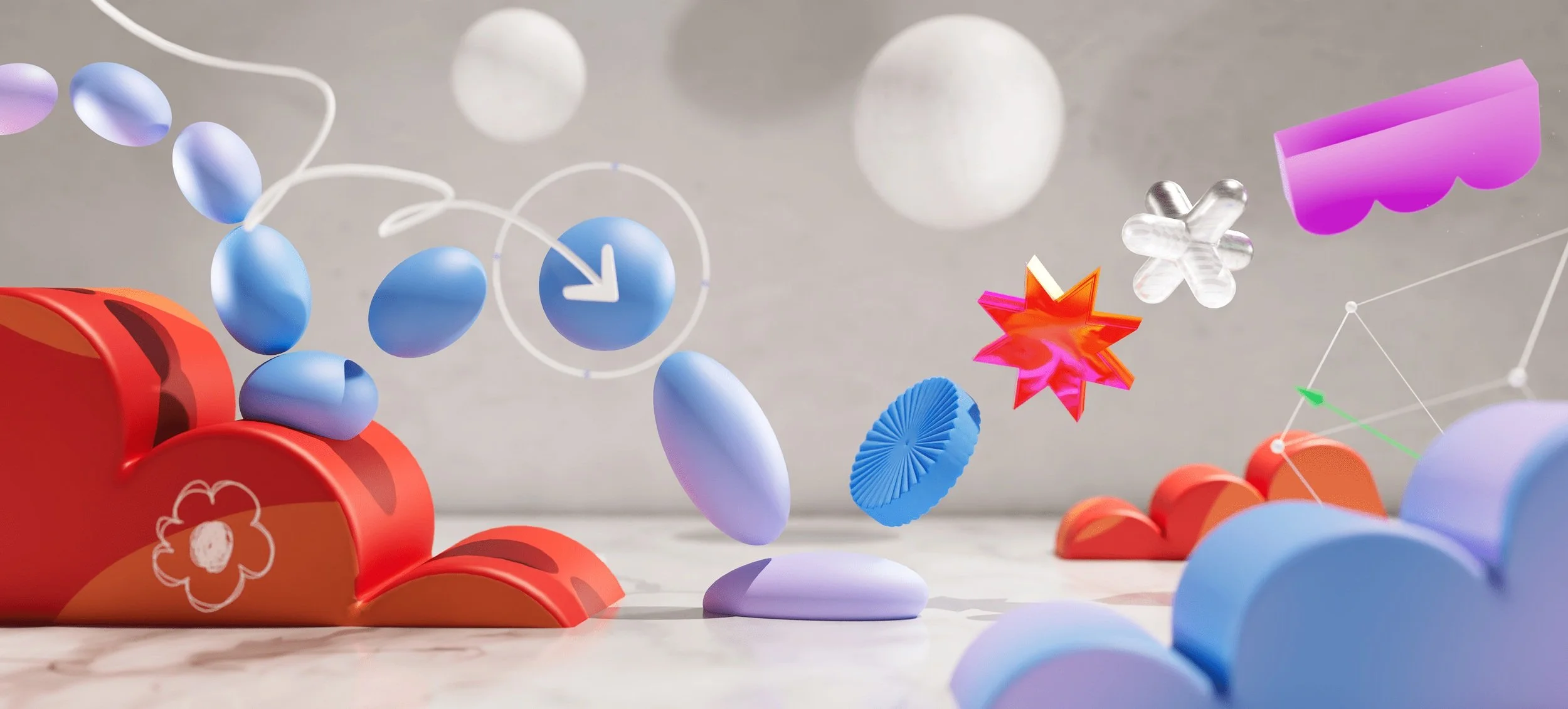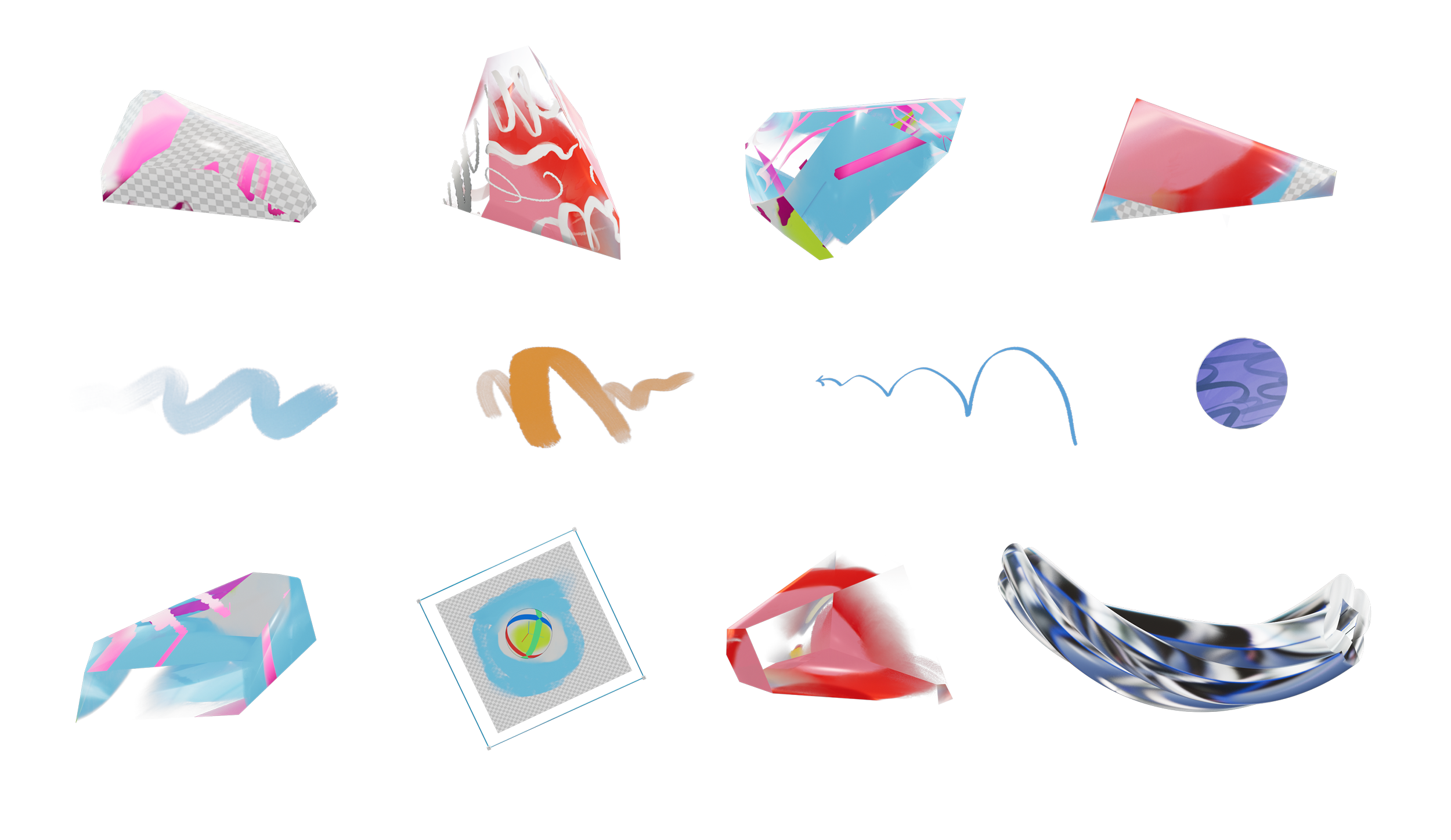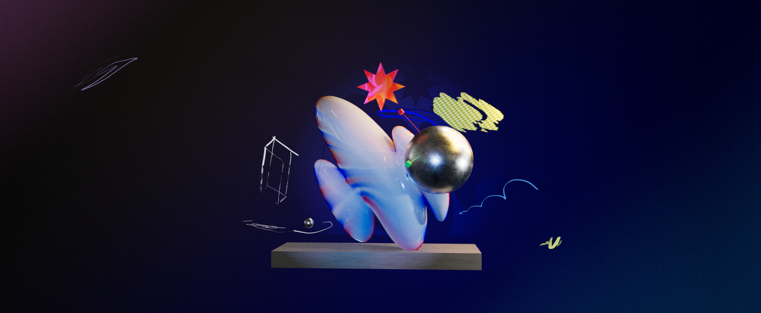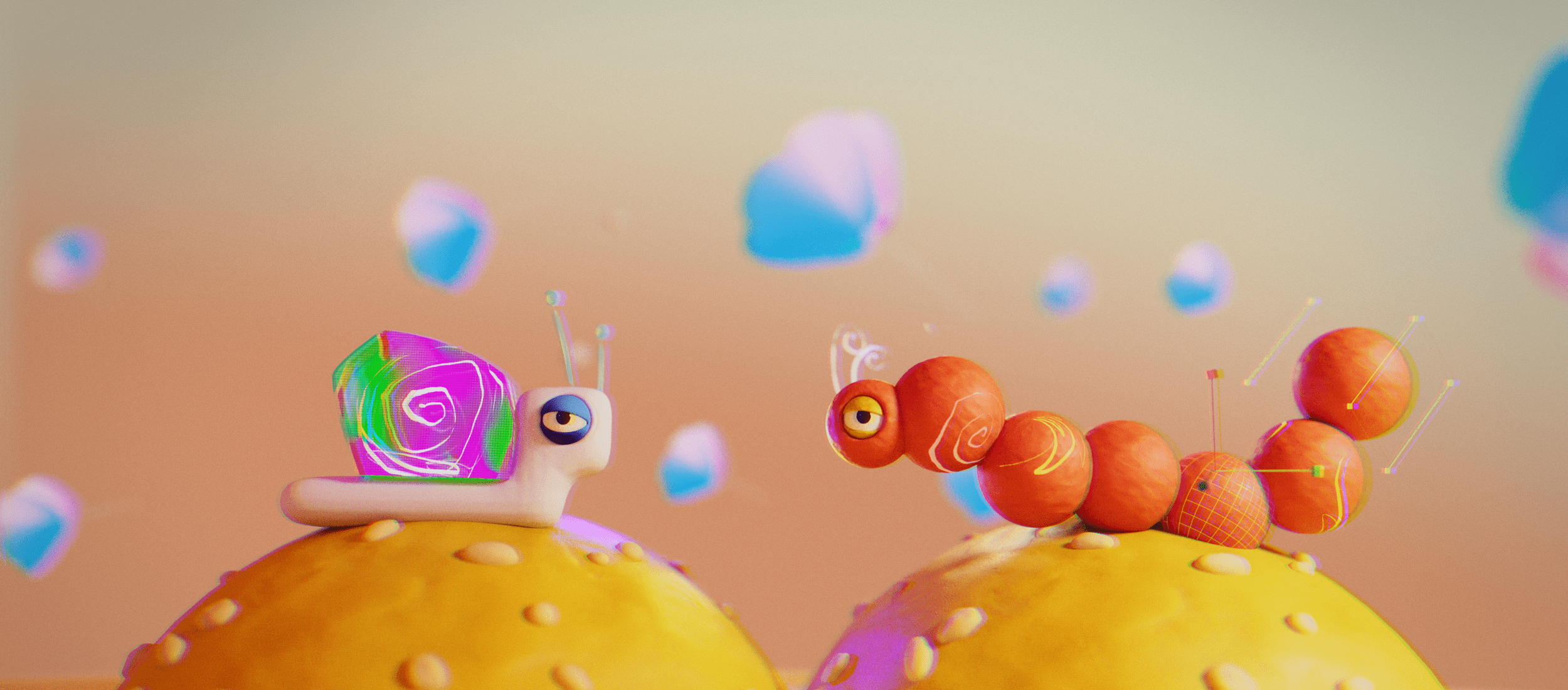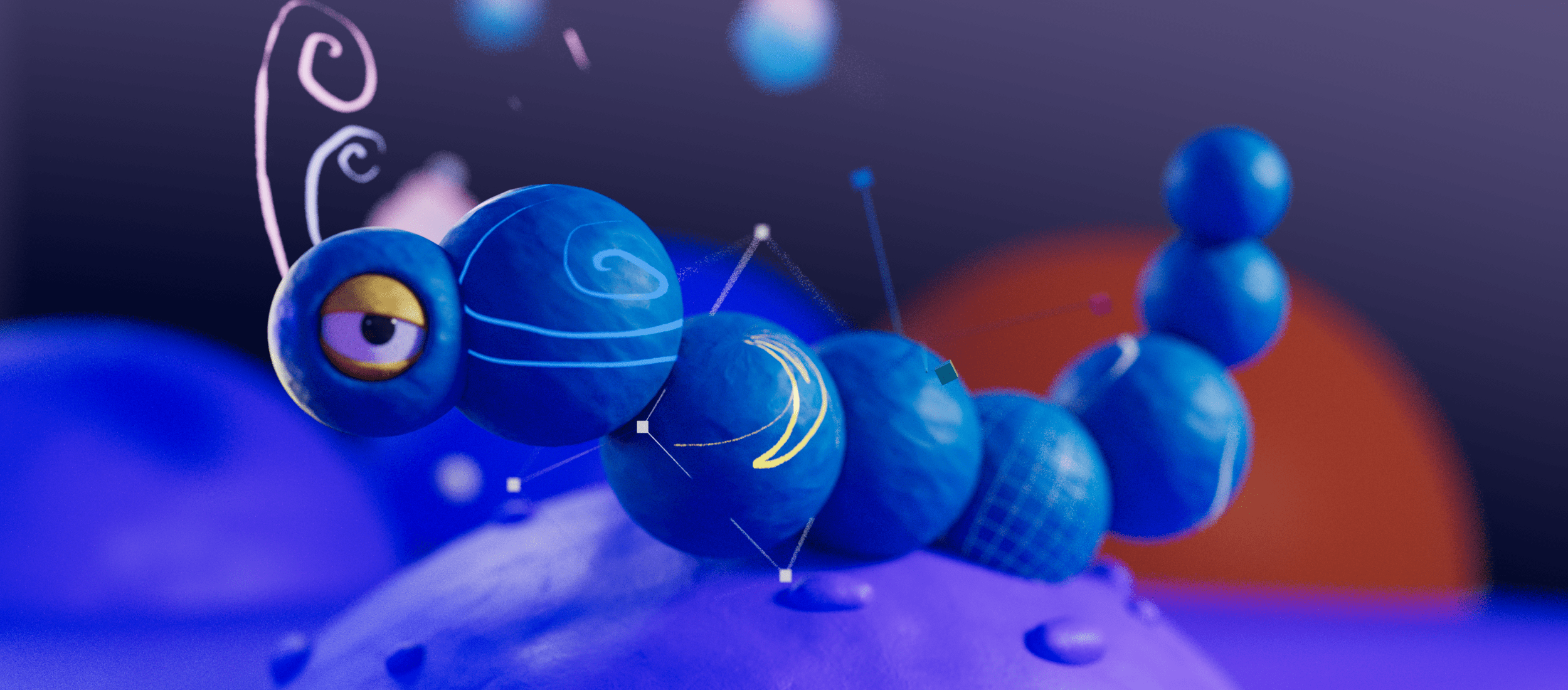 Our film was process-driven, showcasing the tools and techniques of the digital journey of the makers. Bounding boxes, anchor points, characters made of design elements…this entire video was one big nod to the design process. Our favorite part of this project was turning the exploration and development imagery into core art in the final product. Wireframe passes of the character running made it into the start of the run cycle to land the message that art is about process not product. We used screen recordings of layer selections, bad glitched renders that would otherwise hit the trash bin, happy accidents thoughtfully discovered, as well as comps with hundreds of layers to imitate all of the above.