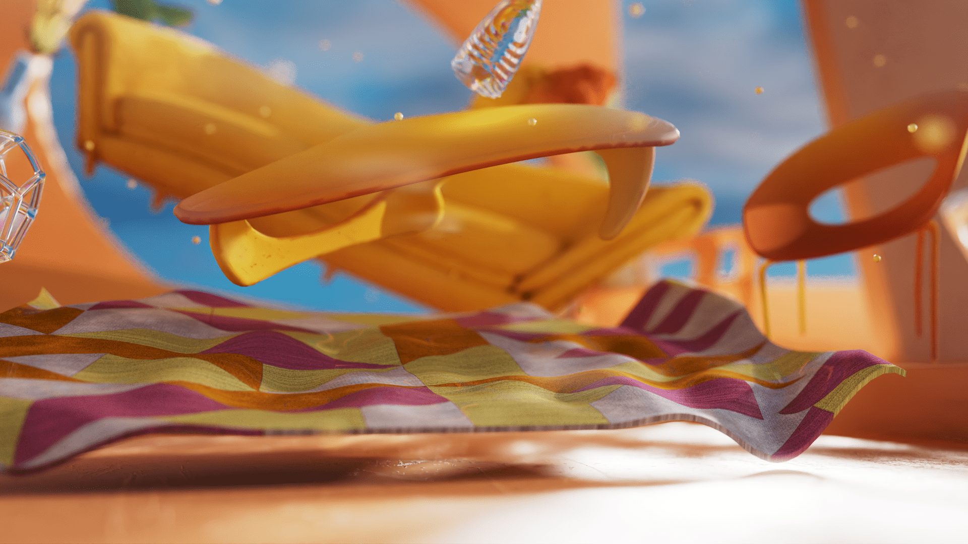 A pulse warps through a condo interior, reshaping the colours and throwing the elements into the air.